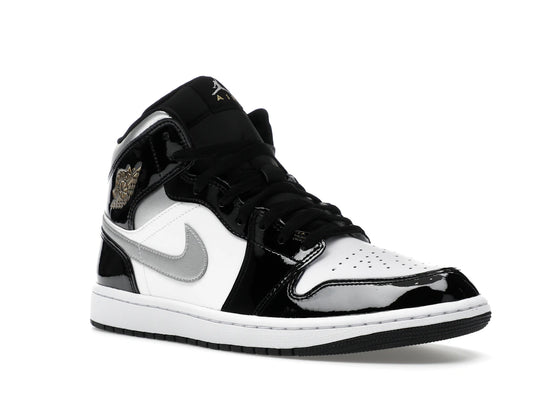 Air Jordan 1 Mid SE Patent Black White Metallic Silver Metallic Gold